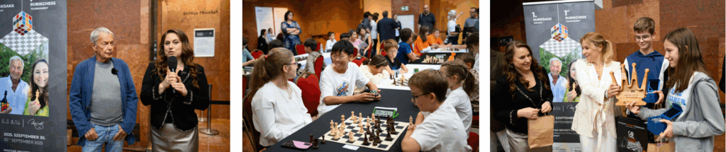 One of the biggest novelties of the 11th Judit Polgar Global Chess Festival was the world’s first RubikChess tournament, officially opened by Judit Polgar and Ernő Rubik, the inventor of the Rubik’s Cube. Interest in the event was enormous: registrations for the fifty mixed pairs of young participants filled up at record speed.